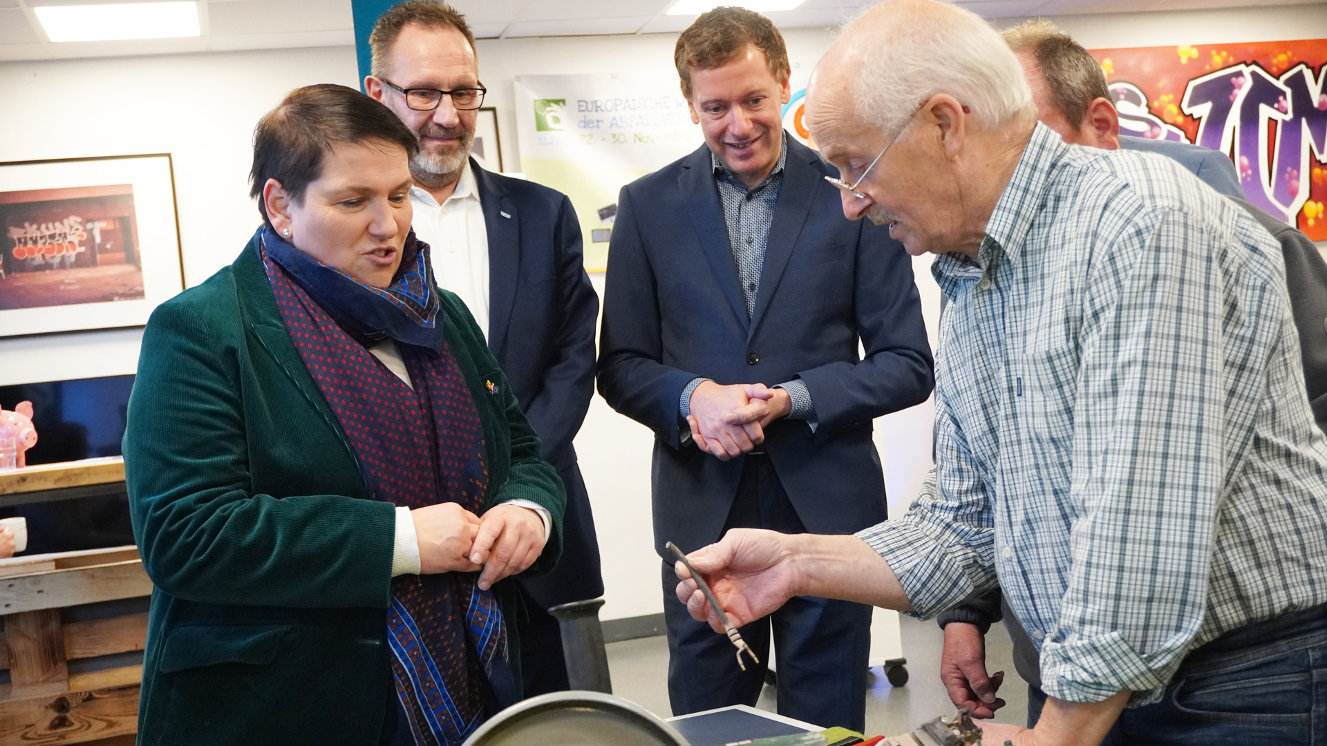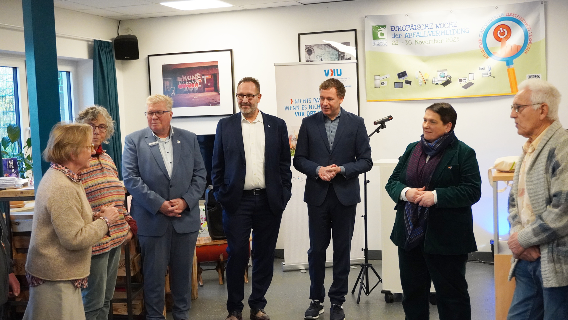 Die Niedersächsische Ministerin für Europa und Regionale Landesentwicklung, Melanie Walter, hat heute in Bassum ein starkes Zeichen für die Europäische Woche der Abfallvermeidung 2025 gesetzt. Gemeinsam mit dem Verband kommunaler Unternehmen e.V. (VKU), der Abfallwirtschaftsgesellschaft Bassum mbH und lokalen Repair-Cafés machte sie vor Ort deutlich, wie ein bewusster Umgang mit Elektrogeräten und die Vermeidung von Abfällen auszusehen hat. Das Schwerpunktthema 2025 lautet: „Reparieren statt wegwerfen: Elektroschrott vermeiden!"
